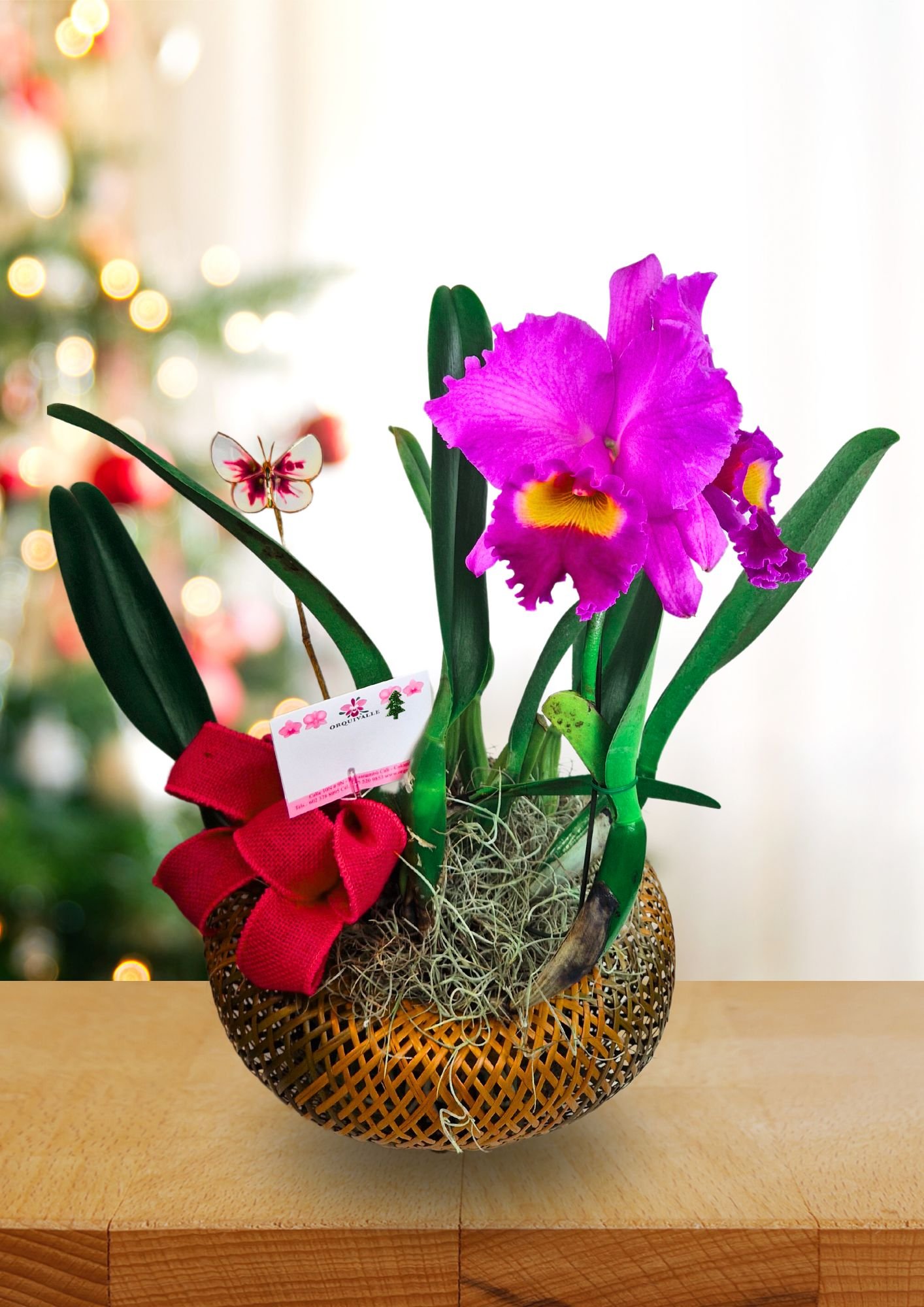 Las Cattleyas son las más reconocidas flores de Colombia y Suramérica. Este arreglo incluye una exclusiva y espectacular Cattleya florecida en un espectacular canasto artesanal, tarjeta con dedicatoria y adornos adicionales. *LAS FLORES DE LA CATTLEYA SOLO DURA 5 DÍAS